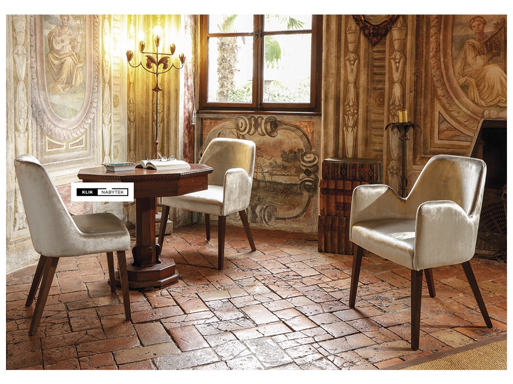 Zakázková výroba židlí (italský design) - Designové křesílko ELODIE 210 - čalouněné je typem velmi elegantního celočalouněného křesílka, které je charakteristické tvarováním zádové opěrky, díky které se na něm velmi dobře sedí. Křesílko vyniká precizním zpracováním a vysocekvalitním čalouněním. Křesílko je vyrobeno s podnoží z kvalitního bukového masivu, který si můžeme nechat namořit na některý z odstínů v nabídce. Tvarování sedáku a zádové opěrky odpovídá vysokému standardu designerů, takže je sezení na něm velmi příjemné a pohodlné. Typ židle Elodie se dá v interiéru místnosti velmi snadno zkombinovat s jakýmikoliv židlemi, stoly nebo sedačkami, se kterými tvoří při jejich vzájemné kombinaci a to i v odlišných odstínech a typech potahových látek velmi elegantní celky. Využití židliček je díky jejich variabilitě a široké škále kvalitních potahových látek velmi široké. Židle lze užívat nejen v domácích prostředí, ale také v luxusních kavárnách, restauracích, sálech, hotelových komplexech, jednacích síních nebo vstupních halách. K židlím se typově hodí velmi široká škála jídelních stolů (bez rozkladu, s rozkladem, kulatými/zaoblenými rohy, aj.).