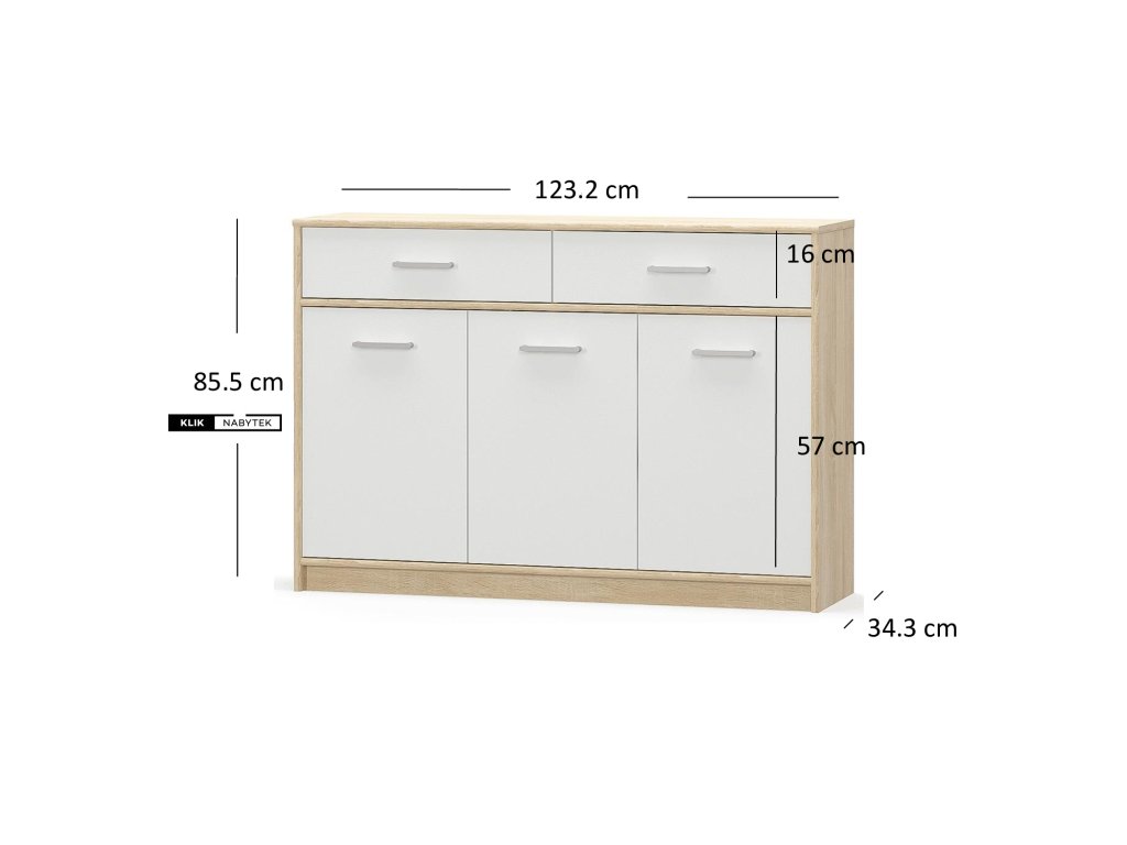 Rozměry komody (š x v x h): 123 x 85 x 34 cm.