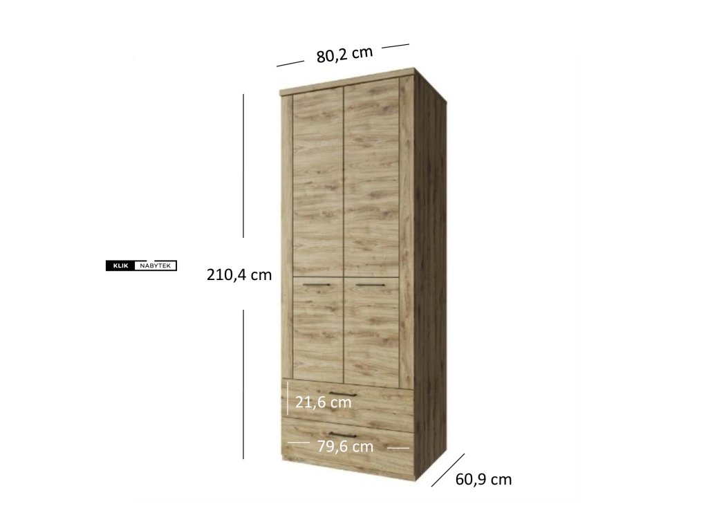 Rozměry skříň (š x h x v): 80,2 x 210 x 60,9 cm.
