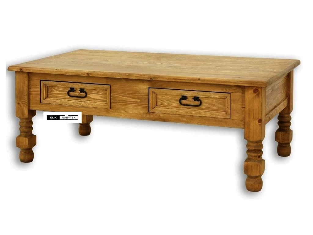 Rustikální konferenční stolek POPRAD MES07A - borovice (tmavý vosk) je typem celomasivního konferenčního stolku se zdobenýma nohama, které více podtrhují jeho rustikální vzhled. Stolek je ve stejném rozměru nabízen i ve variantě MES07B s rovnýma nohama. Pro snadnější sladění interiéru s již vlastněným nábytkem je stolek nabízen v atraktivním vosku tmavší barvy, díky kterému krásně vynikne struktura přírodního dřeva. Konferenční stolek se díky své velikosti hodí nejen do menších, ale i větších obývacích pokojů, kanceláří a pracoven, ale také na chaty a chalupy. Díky široké škále výrobků z kolekce Poprad si jím můžeme zařídit i apartmány, kanceláře, aj. komerční nebo ubytovací prostory. Nespornou výhodou borovicového nábytku je kromě přirozeného vzhledu a vůně přírodního dřeva také jeho příznivá cena a nesporná velká odolnost v prostředích s většími teplotními výkyvy, kde ostatní typy lepených dřev (buková nebo dubová spárovka) trpí.