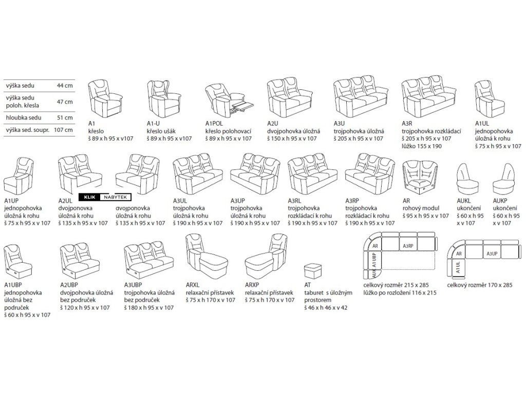 - sedačku lze doplnit pohodlným křeslem v počtu: 1, 2 a více kusů (kontaktujte nás při potřebě sestav jinou variantu sestavy).